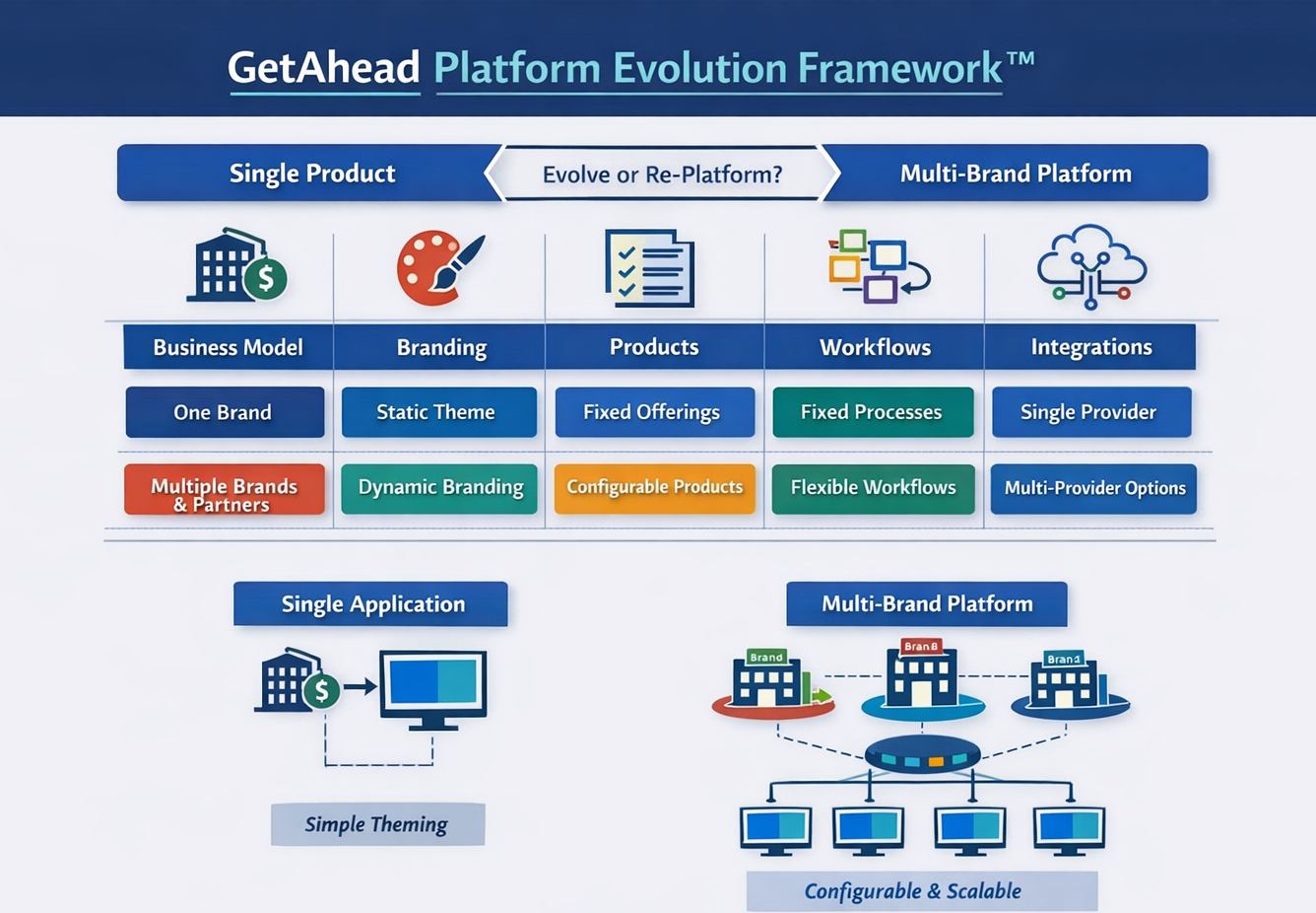 The second approach involves transforming the system into a configuration-driven multi-brand platform.